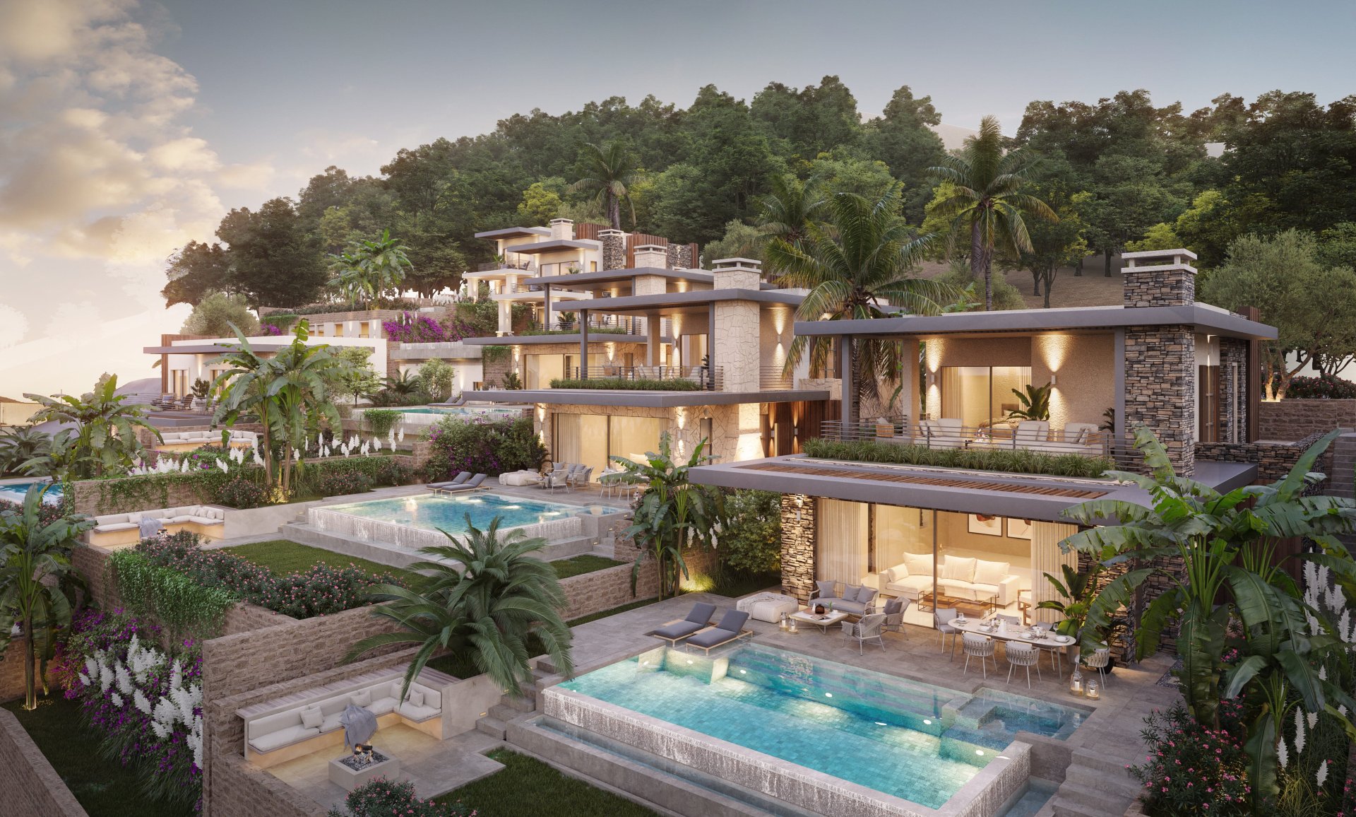 В рамках проекта жилого комплекса доступны виллы с вариантами планировки от 6+2 до 8+3, площадью от 389 до 540 квадратных метров.