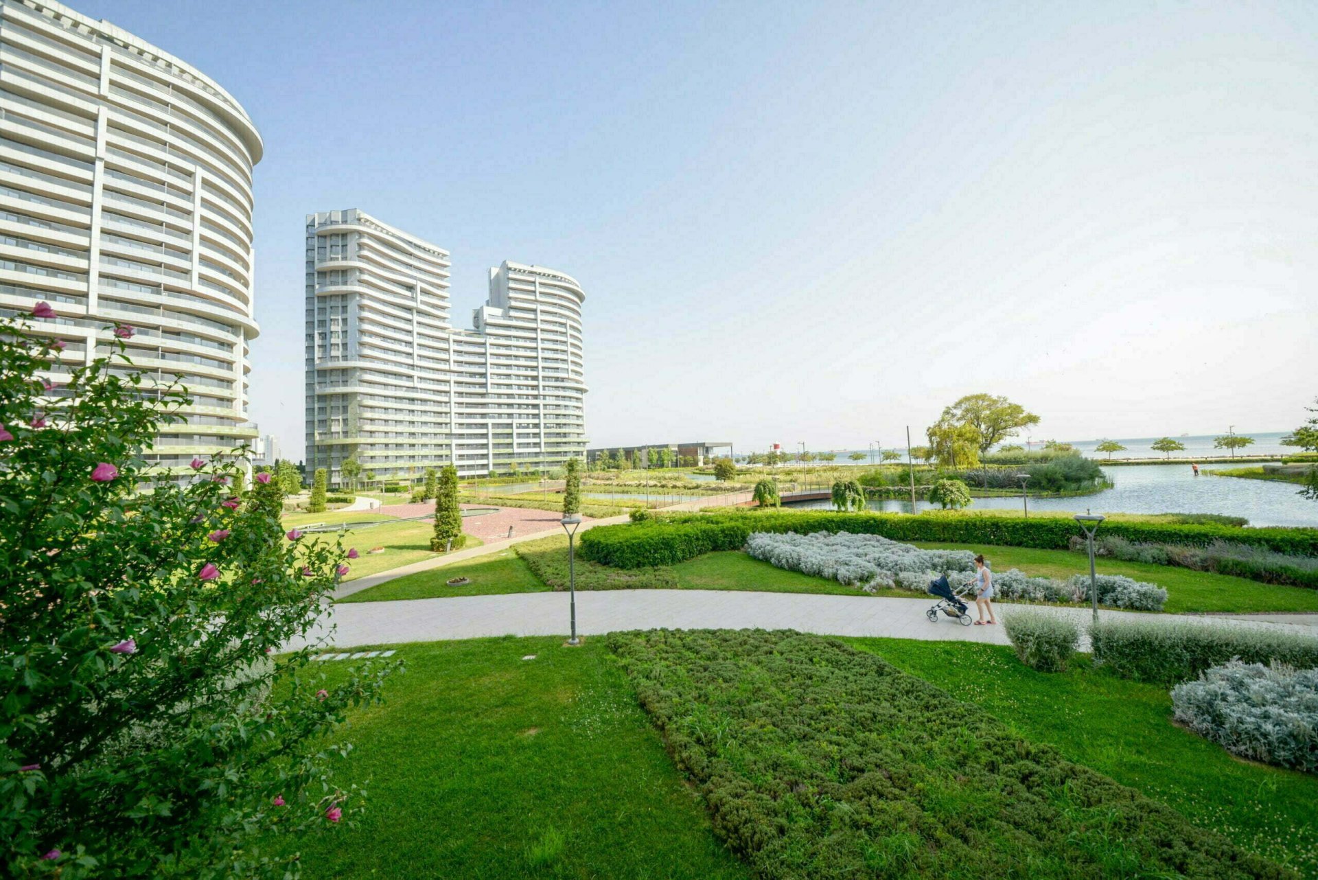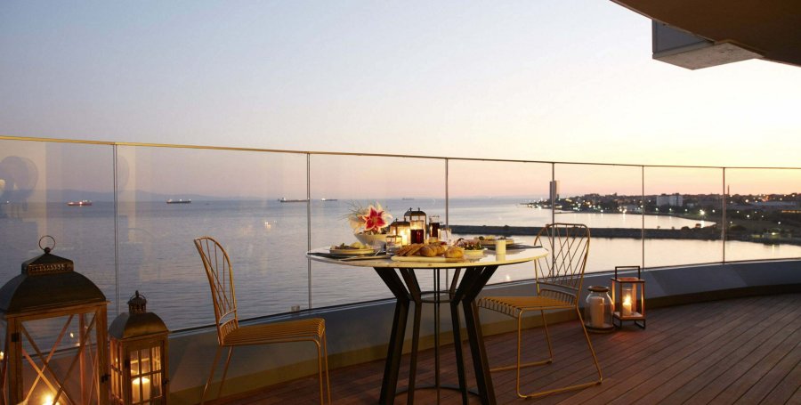 Апартаменты SEA PEARL ATAKÖY имеют собственные большие террасы с зеленью, откуда открывается шикарный вид на экопарк с водоемами, пирсом и ландшафтным дизайном, а также на Мраморное море.