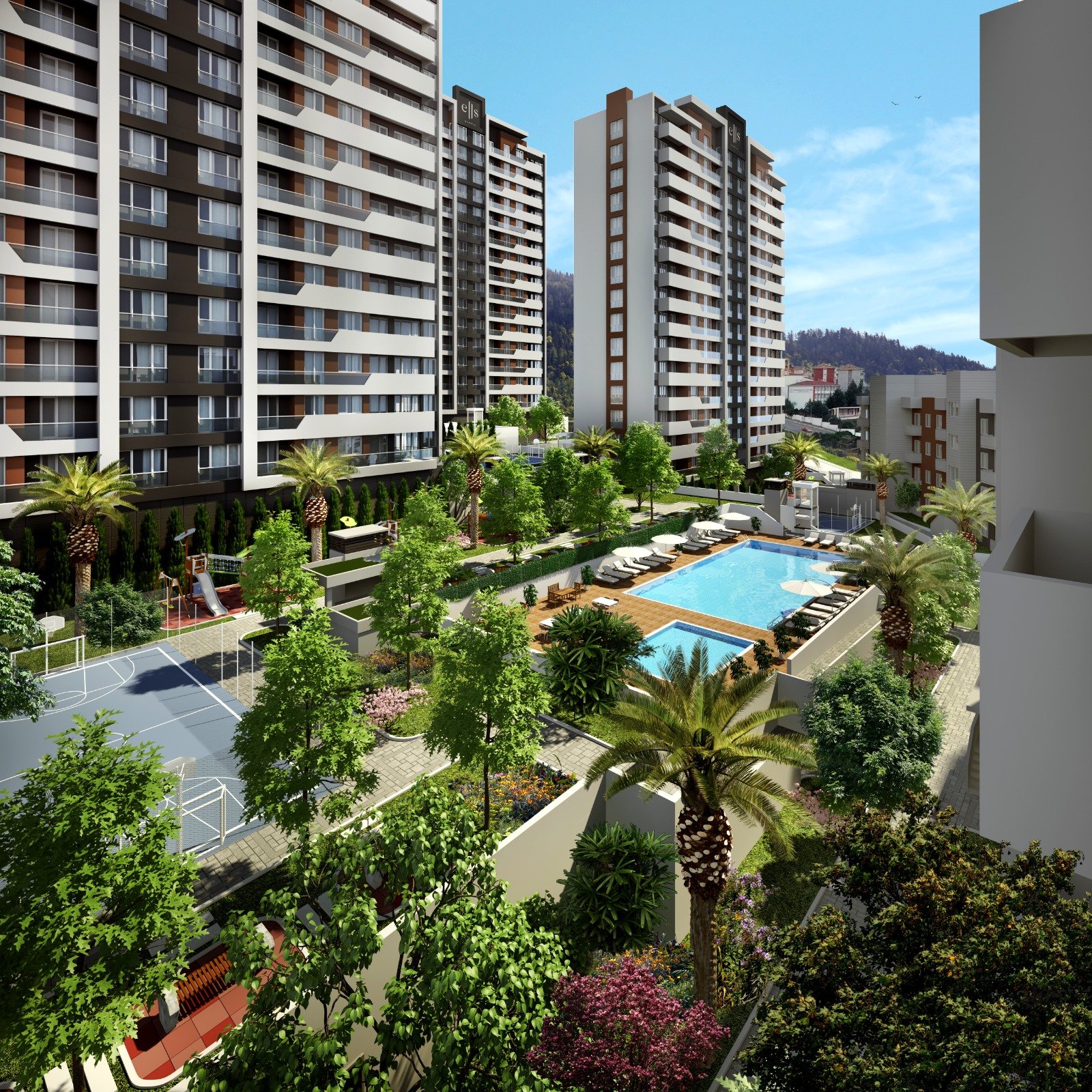 На территории жилого комплекса Ells Kartal прекрасно развита внутренняя инфраструктура. Для его обитателей множество вариантов для отдыха и занятий спортом.