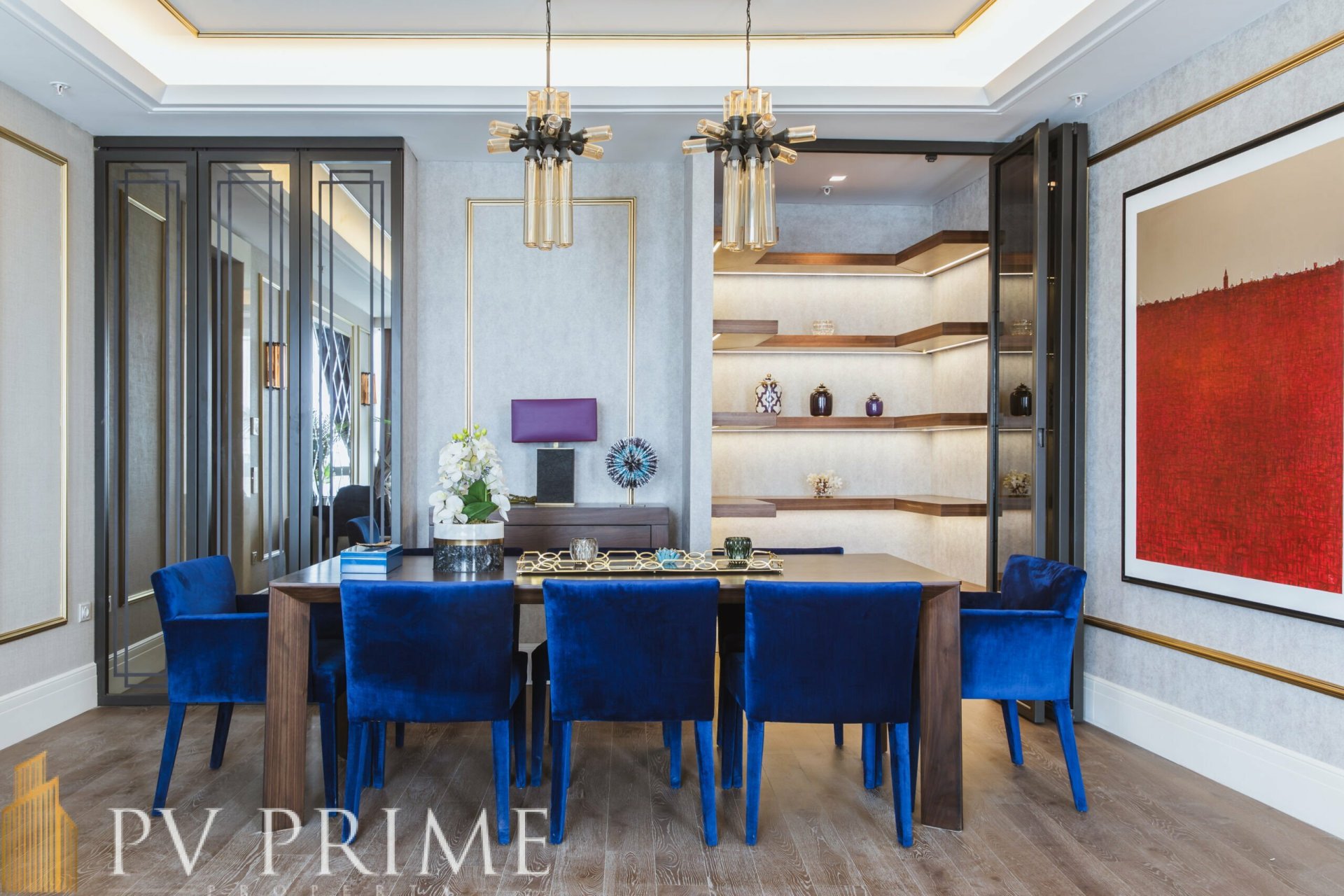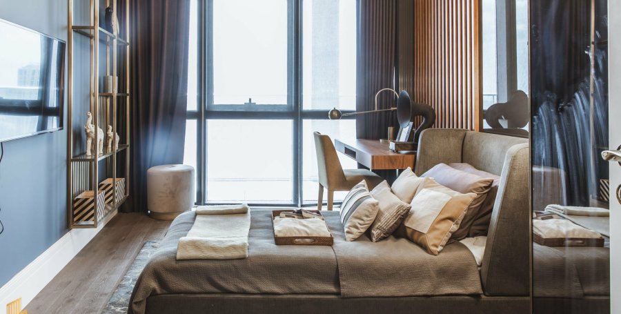 Во всех апартаментах – мраморные полы, широкие окна и высокие потолки. Квартиры снабжены системой управления умным домом и кухонным оборудование Siemens.