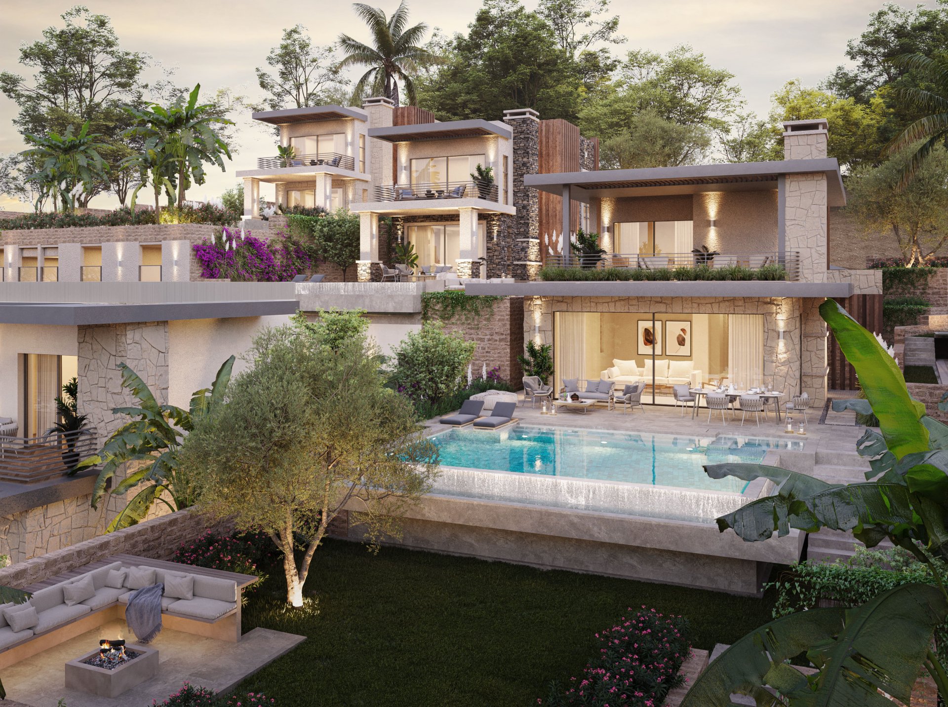 В рамках проекта жилого комплекса доступны виллы с вариантами планировки от 6+2 до 8+3, площадью от 389 до 540 квадратных метров.