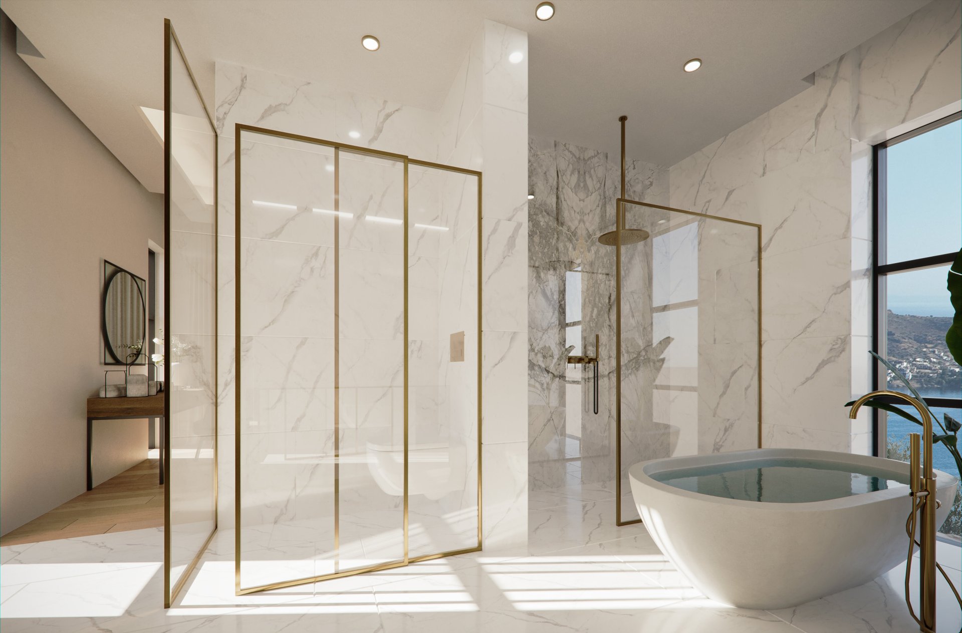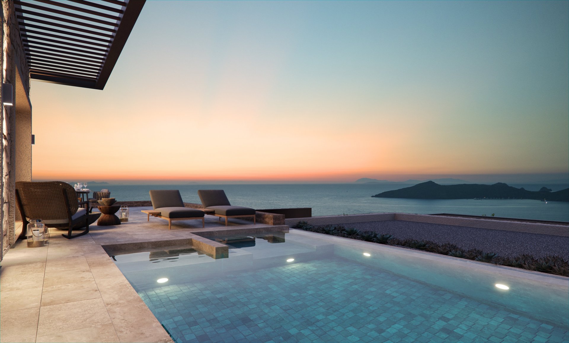 С каждой виллы открывается роскошный вид на Средиземное море и пристань Ялыкавак. Кроме того, на территории каждой виллы есть бассейн и живописный сад.