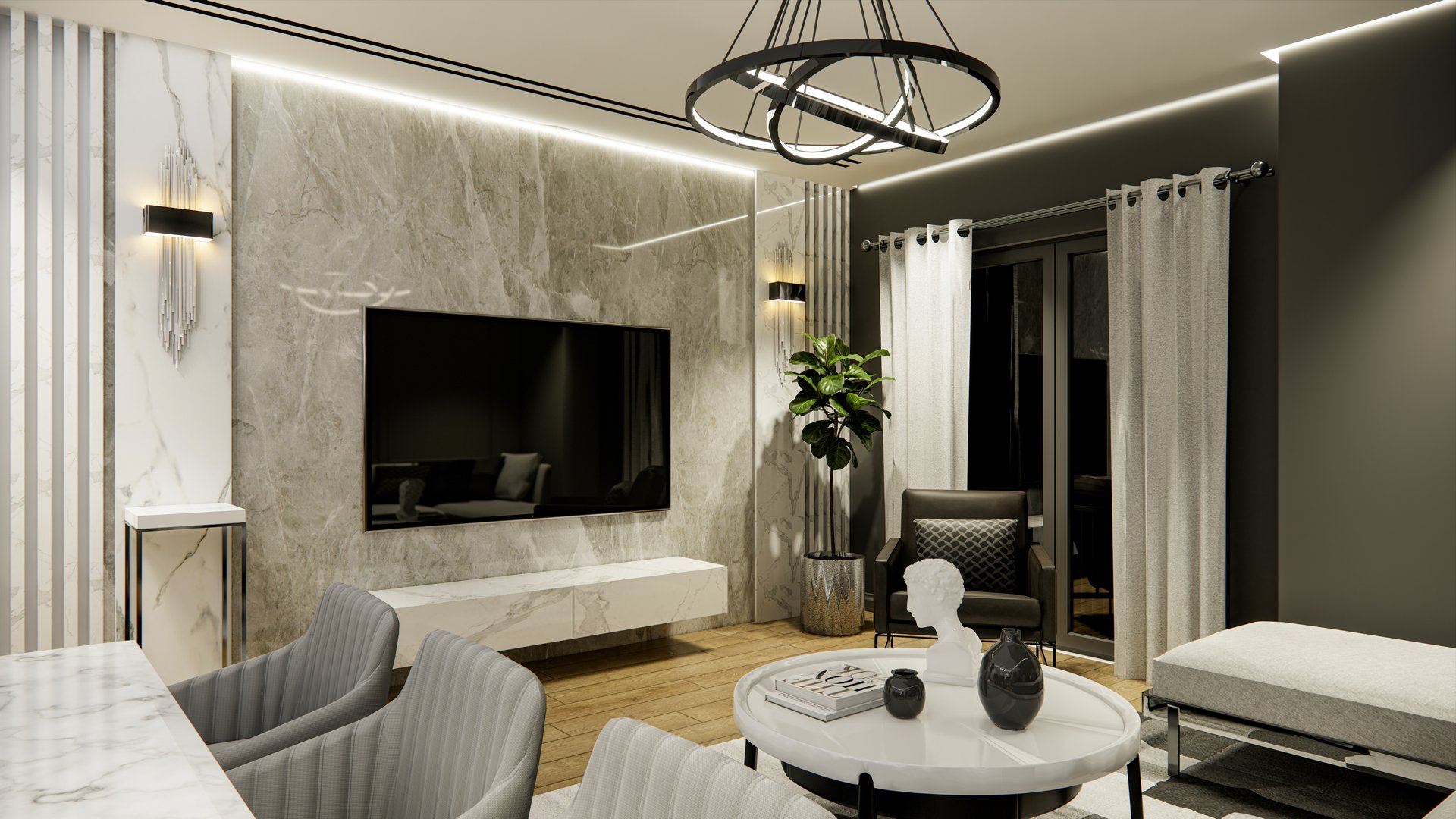 جميع الشقق في مجمع سينا بارك السكني مجهزة بتكييف الهواء وموقد وفرن وشفاط وأنظمة تدفئة للأرضيات.